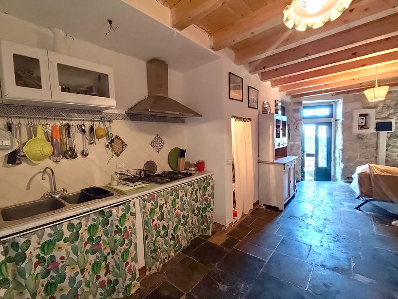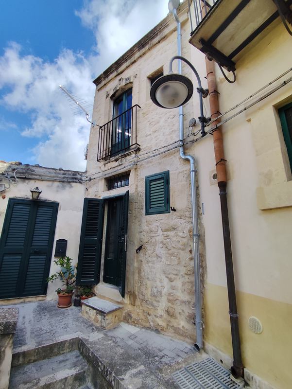 An independent house on the popular Via Scribano in the heart of Modica Bassa. The house has been restored and offers: entrance to large living/dining/kitchen with a kitchen in muratura, floors in antique pietra pece, understairs storage and a small grotta. Stairs up to first floor with 3 piece bathroom, single bedroom and double bedroom with ensuite wc. Predispostion for a/c. The works done about 12 years ago include new roof, rewiring and replumbing.