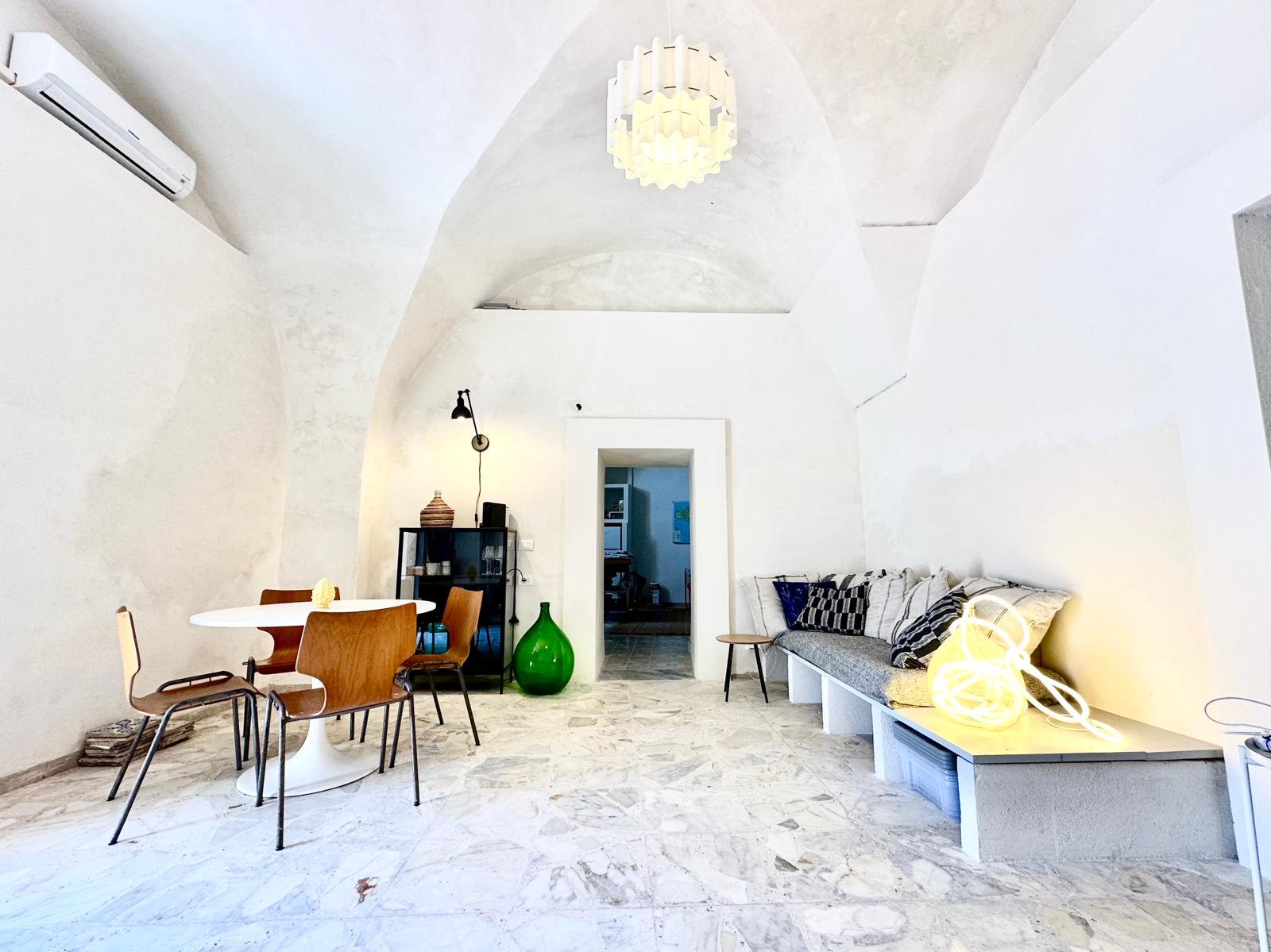 The first of the properties has been restored and offers a large living with a bed niche ‘in grotta’, and a 4 metre cross vaulted ceiling.  Through to kitchen/diner with high ceiling,  induction hob and washing machine, aswell as a bathroom with shower.
