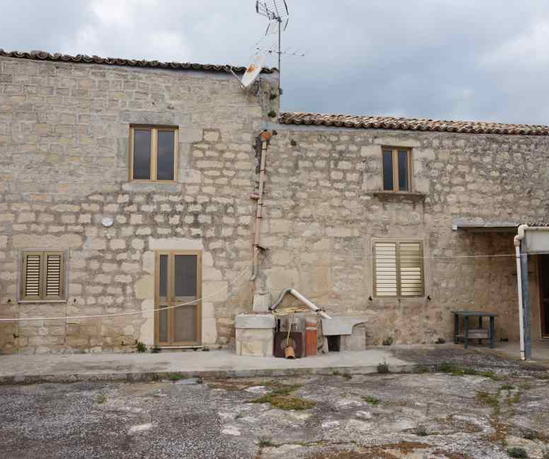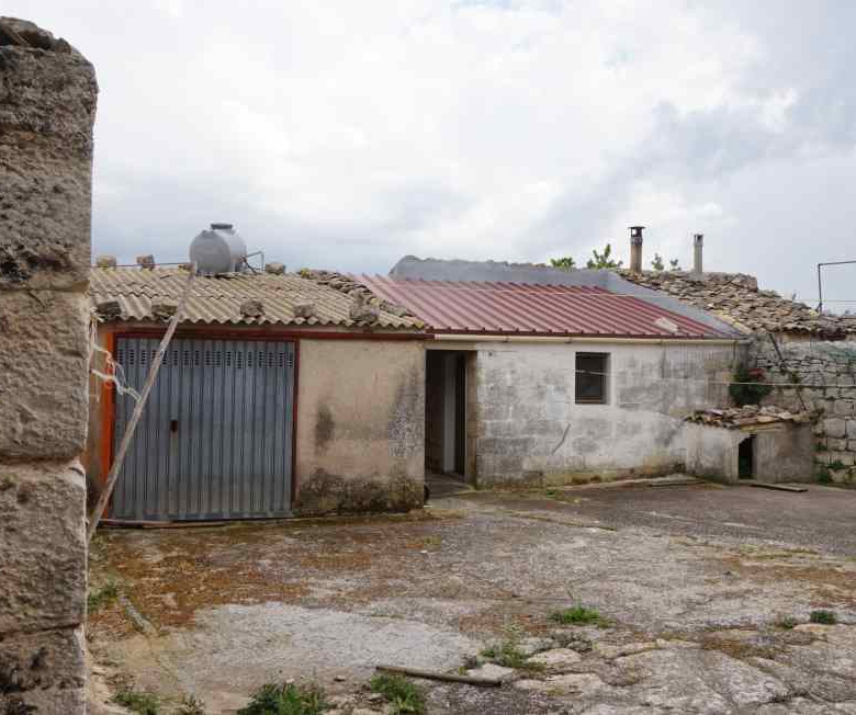 A property with huge potential in Contrada Bibbiola. The main entrance is a classic arched doorway which leads into the courtyard (baglio). The house is on the right of the courtyard and is composed of 4 rooms on the ground floor plus kitchen and bathroom, and is habitable though in need of some modernisation. A staircase leads to the recently converted mansard (to finish) with another 3 rooms. On the other side of the courtyard there is a garage, an external kitchen and stores, as well as a stone barn. There are also other stone buildings on the land, used as pigsties, chicken coops etc. A large building – 5m x 30m single storey, offers great possibilities for conversion into holiday homes, or other uses. The land amounts to over 6000mq with panoramic views over the beautiful countryside. Cistern and mains water, electricity. Not isolated, Bibbiola is an agricultural contrada inhabited all year round.