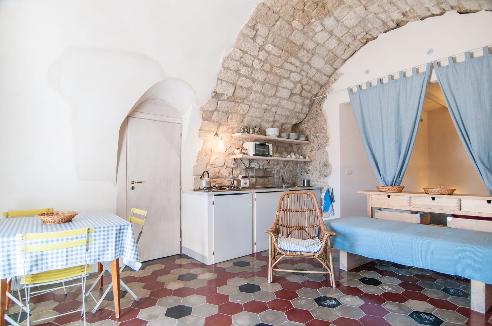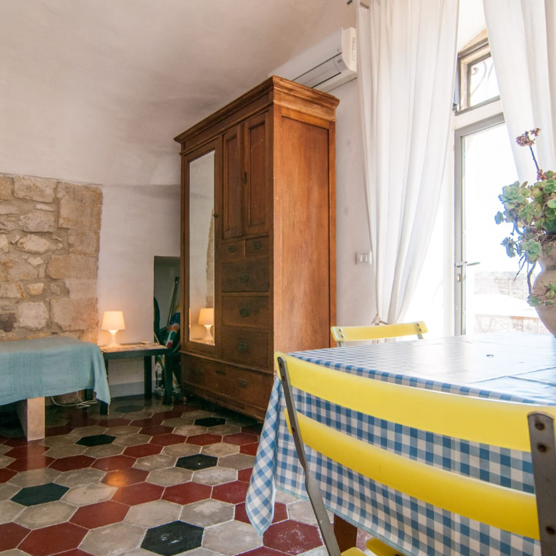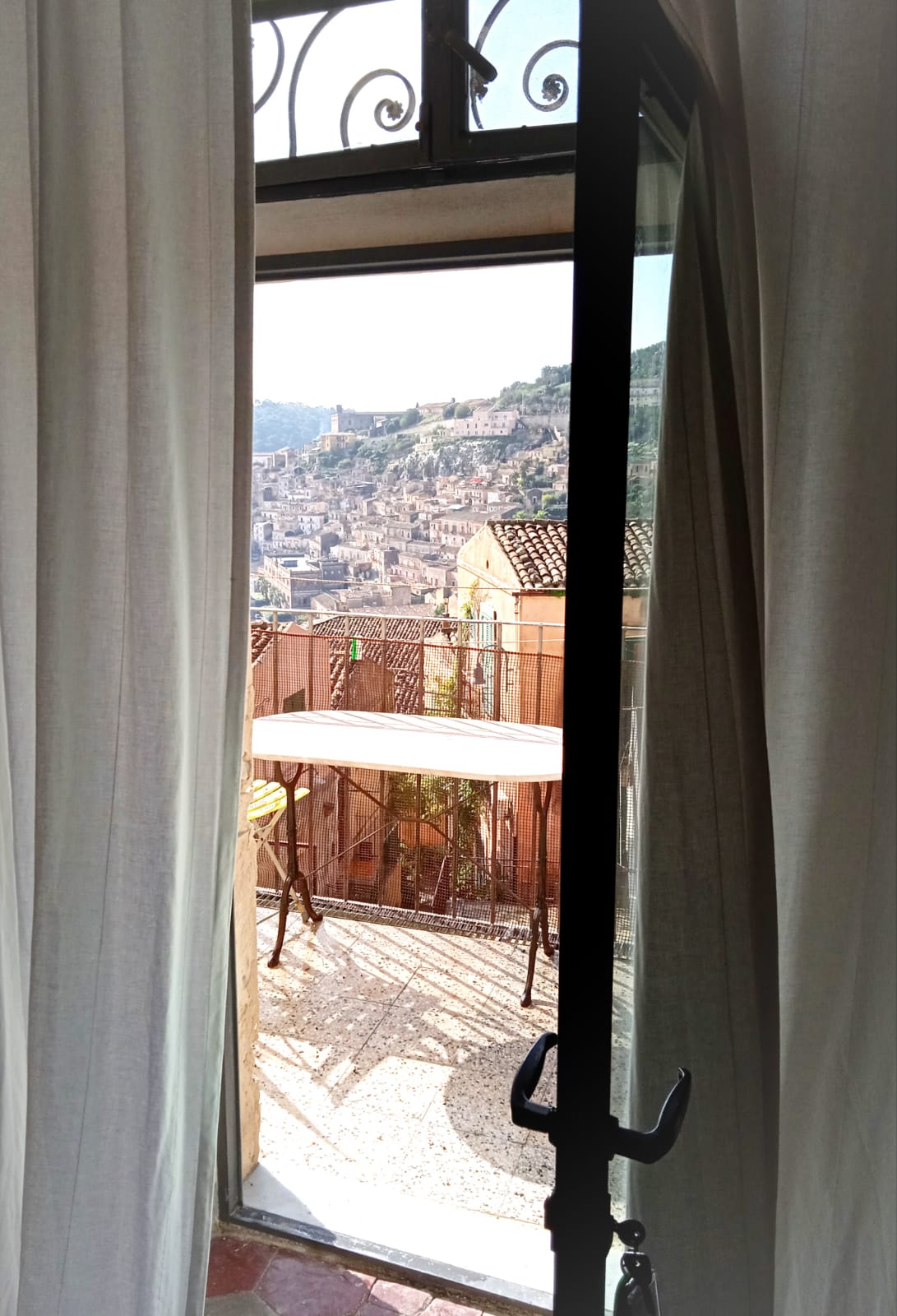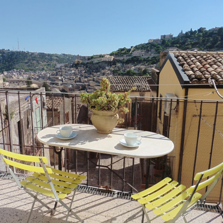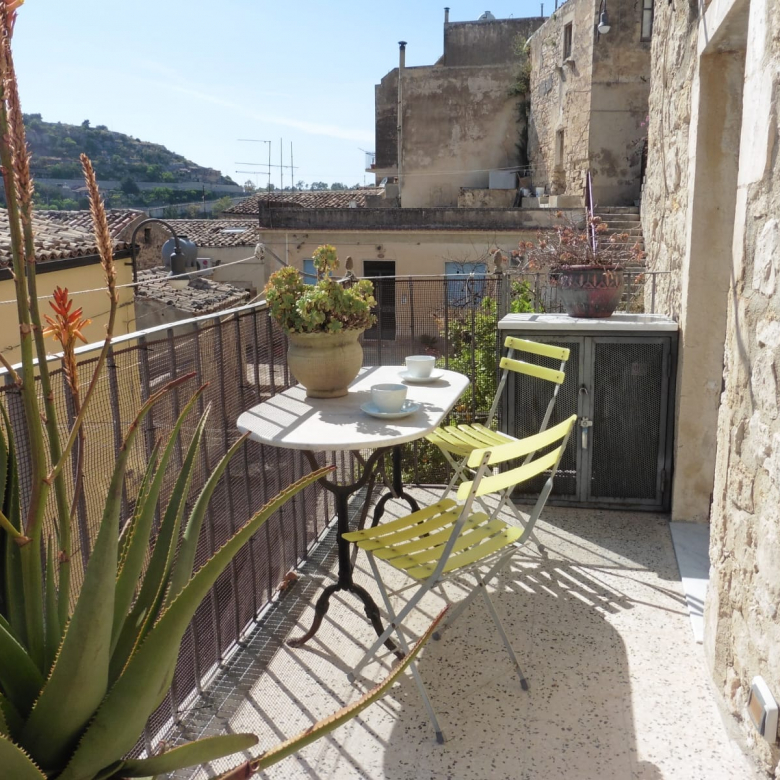 Apartments with panoramic views over Modica in Via Sigona. Reached by a flight of stairs the property offers: 1) A studio apartment completely restored with an eye to detail, it has a little south facing terrace with views, a large room with original floors and a barrel vaulted ceiling. Kitchen, living zone and a bedroom niche with separè. The bathroom is in grotta. 2) The adjacent apartment is included in the sale and the two can be connected via a door, and is bigger. To restore. Once restored the entire property will offer 2 beds, 2 baths, living room and kitchen. Overall about 80mq.