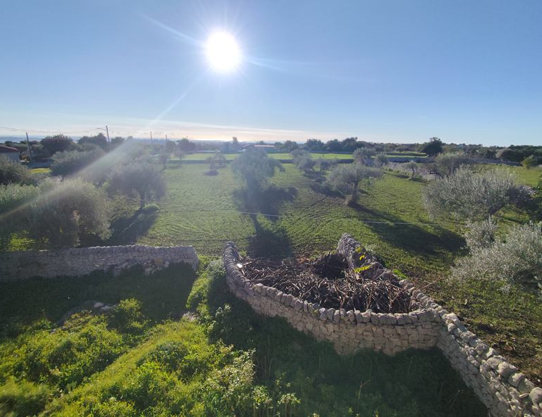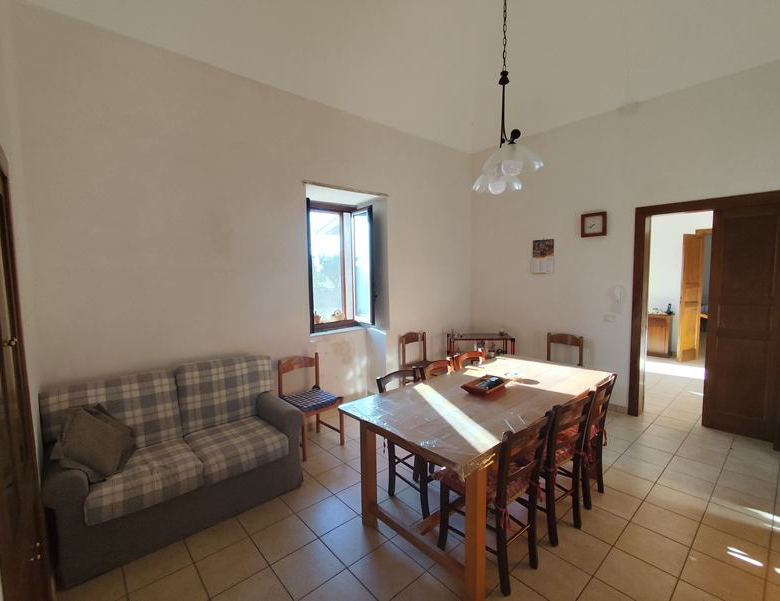 The main house was restored some years ago, and is completely habitable and offers about 200mq of accommodation: entrance with verandah, living room, dining room, 2 double bedrooms, kitchen, and a second kitchen ‘rustico’ with oven. There is predisposition for central heating. Facing onto a classic baglio in pietra viva, the two wings of the property are made of agricultural deposits, barns, stalls and a chapel. The arched entrance to the courtyard, has stairs up to a terrace with a bell ‘tower’.