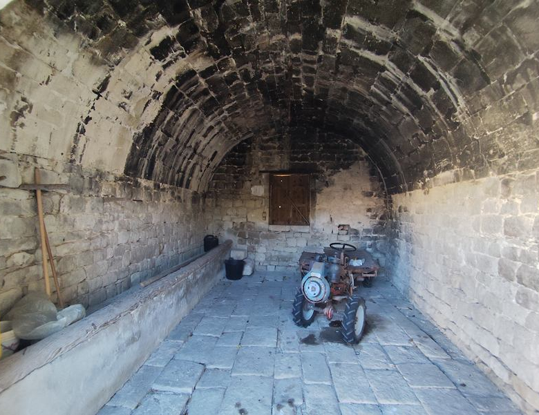 Outside the arched entrance, there are further agricultural buildings in varying states of repair and a tettoia.