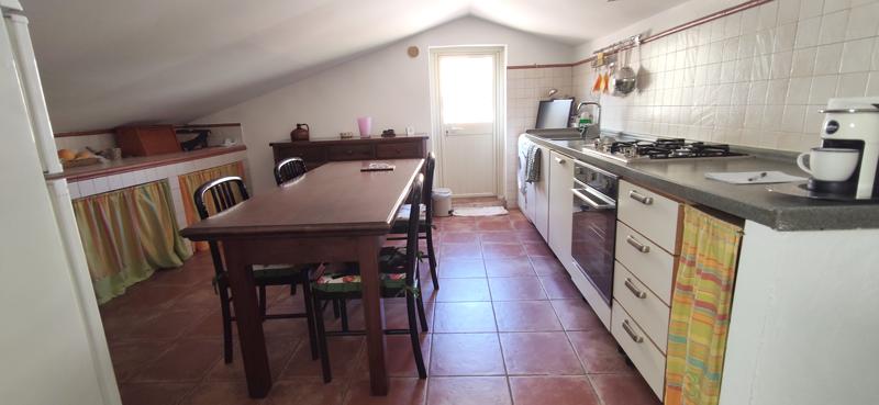A well restored independent house of 135mq just off the Corso, and with 2 terraces. Ground floor: large living room with fireplace, kitchenette and bathroom. Stairs to 1st floor: Large master bedroom with walk in wardrobe and balcony, second double bedroom, bathroom and laundry. Stairs to large fitted kitchen with pantry and 2 terraces. GCH. Ready to move into.