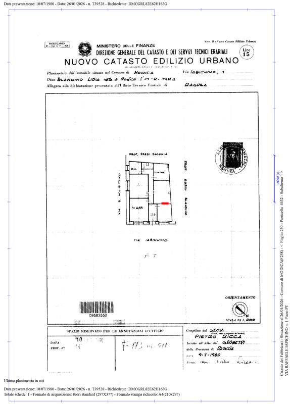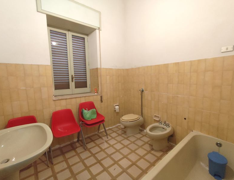 The property is approximately 100mq, and consists of entrance hall, with 2 rooms off to the left, and a large room off the to right behind which is a kitchen.   Bathroom and doppio Servizi.