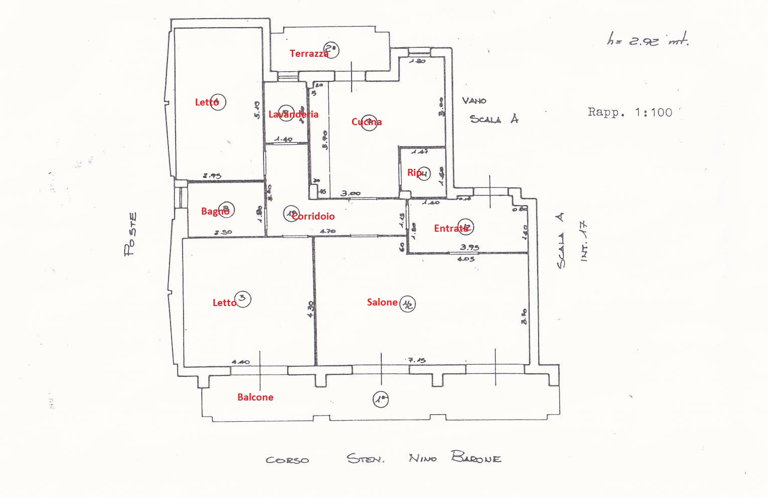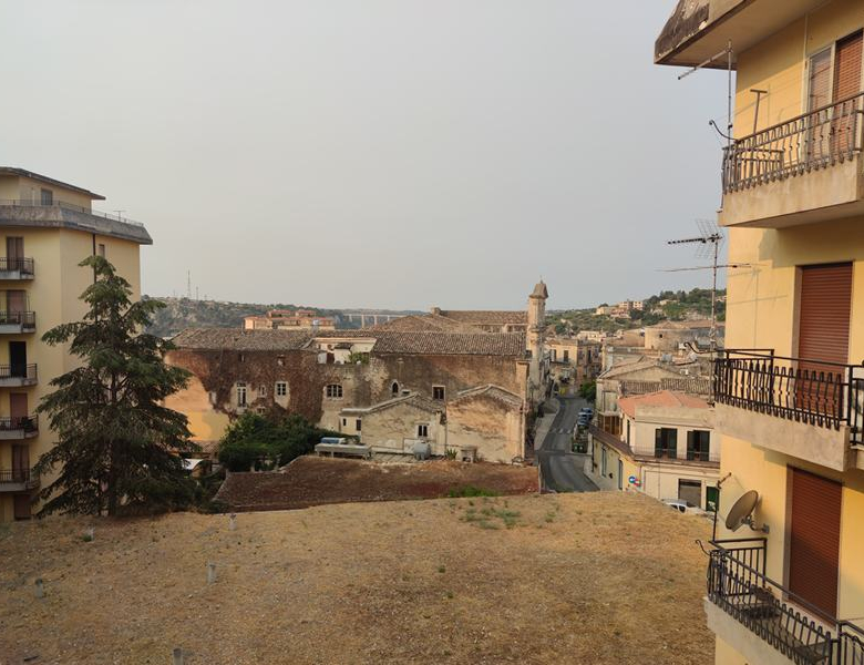 A 4th floor apartment above the PO on Corso Vitt Emanuele in Modica Alta. The apartment is 140mq and comprises: entrance, large living room, 2 double bedrooms, family bathroom with bath, kitchen, lavanderia and storage. The apartment is exceptionally light and airy having open views to the front, as well as the rear across to Santa Teresa.